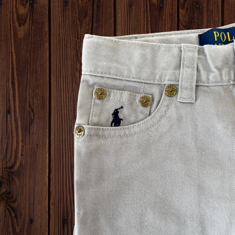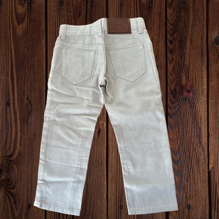 Estos jeans para niño de la marca Polo Ralph Lauren están confeccionados en una tela resistente de color beige claro, ofreciendo un estilo clásico y versátil. Presentan un diseño de cinco bolsillos con detalles distintivos, como el logo bordado del icónico jinete en el bolsillo pequeño y remaches metálicos grabados con la marca. La parte trasera incluye una etiqueta de cuero con el logo en relieve, agregando un toque elegante. Su corte recto y confección de alta calidad garantizan comodidad y durabilidad, ideales para cualquier ocasión.