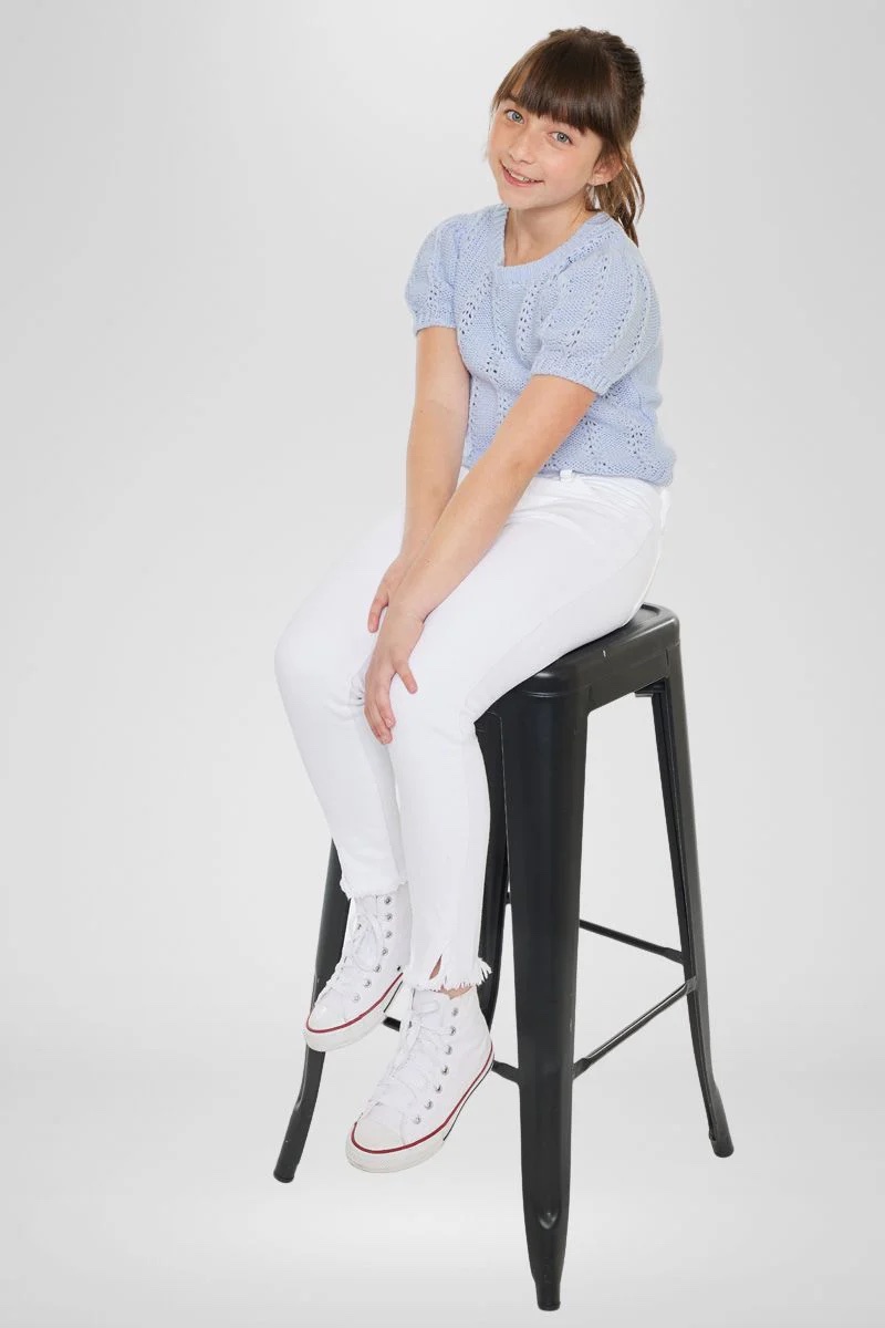 Estos High Rise jeans (tiro alto) para niña son el toque perfecto para un look moderno y con actitud. Diseñados en denim stretch, le brindan máxima comodidad durante todo el día.