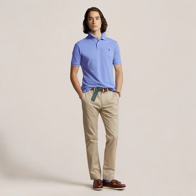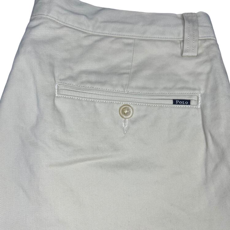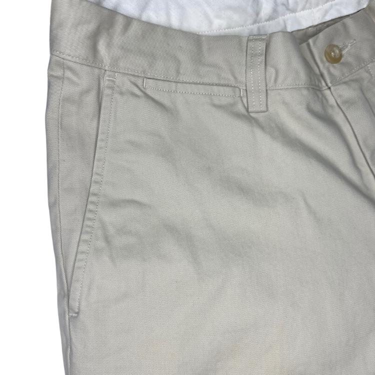 Estos pantalones chinos destacan por su diseño elegante y versátil en un tono beige claro, ideales para diversas ocasiones. Este modelo auténtico de Polo Ralph Lauren cuenta con bolsillos traseros con cierre de botón y una pequeña etiqueta distintiva de la marca, asegurando calidad y estilo. Perfectos para un look casual o semiformal, combinan sofisticación y comodidad.