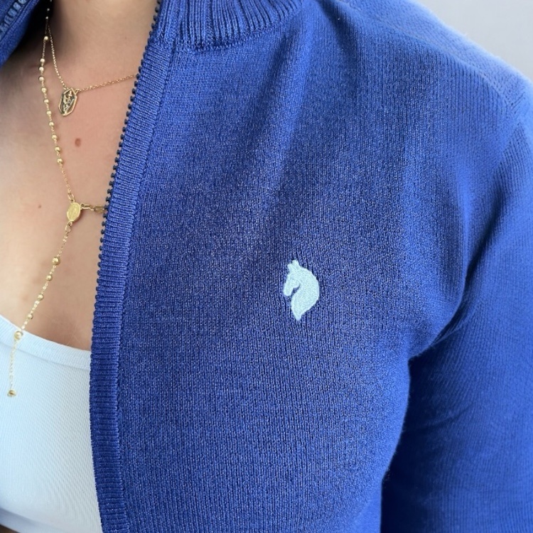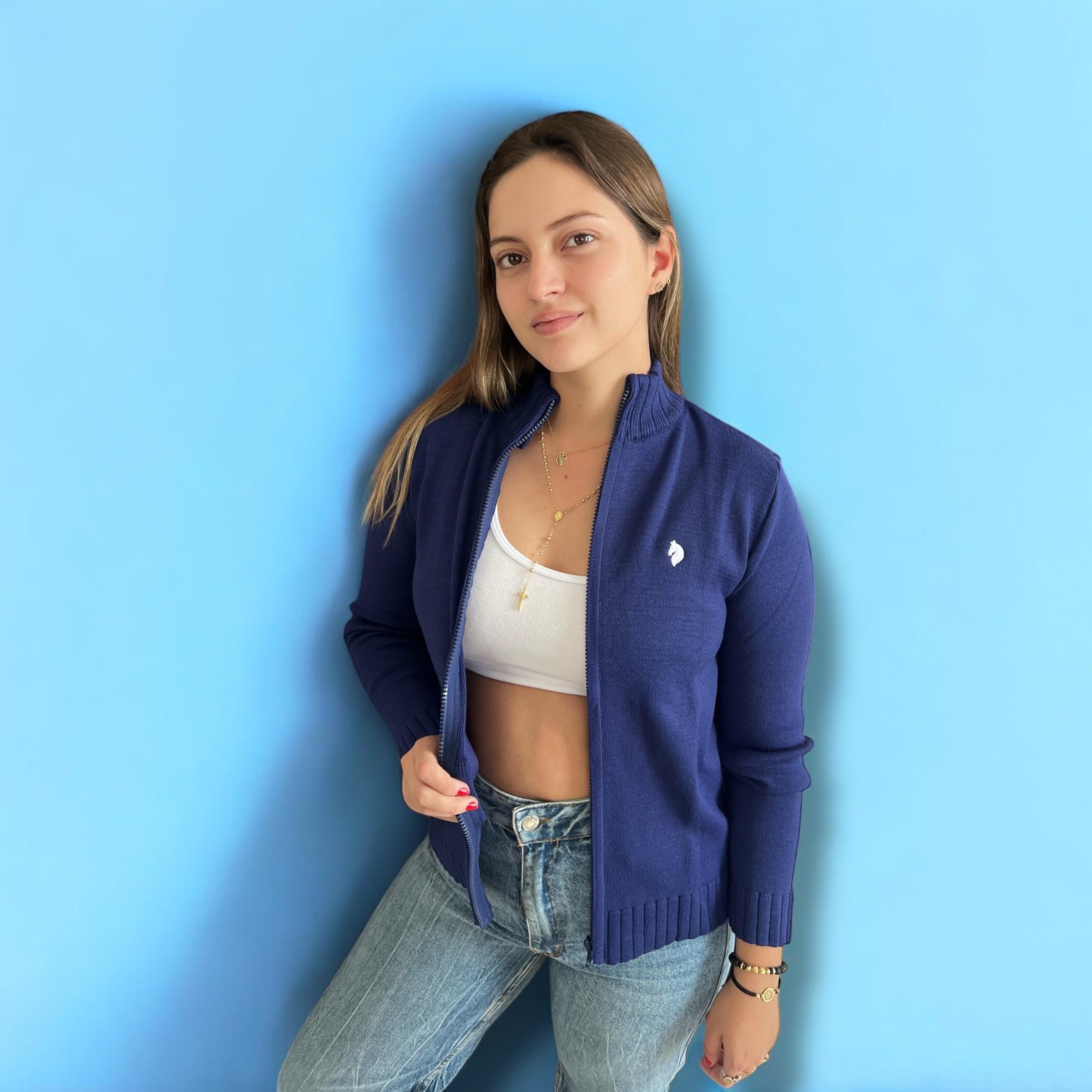 Diseñado en tejido liviano y suave, cuenta con cierre frontal y un detalle bordado que realza el estilo.